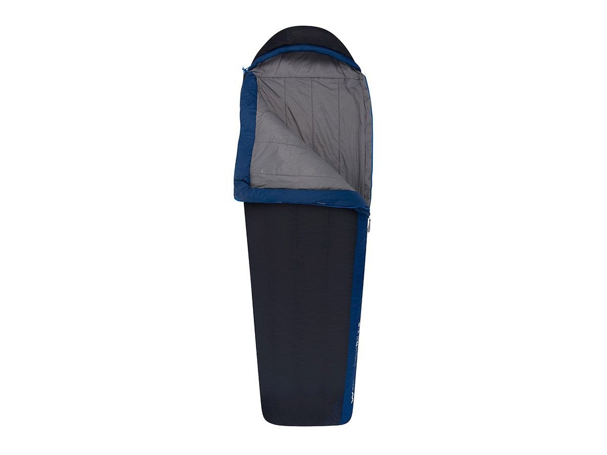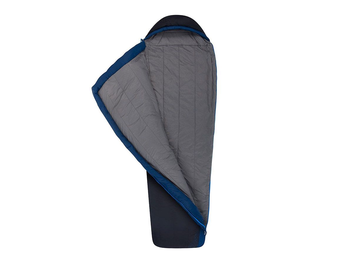 Su forma rectangular cónica proporciona más espacio y comodidad que una bolsa de momia tradicional, mientras que la cremallera lateral y de pie completa permite que la bolsa se abra y se use como un edredón. Un segundo control deslizante con cremallera en la caja del pie proporciona ventilación adicional y un ajuste versátil de temperatura.