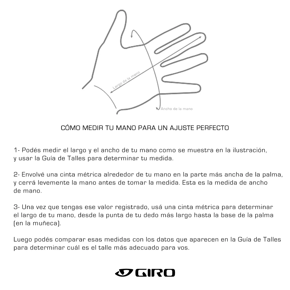 Guía de Talles (circunferencia de la mano sin incluir el pulgar):
